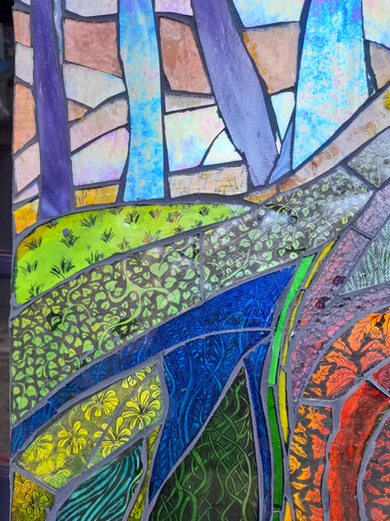 Mosaic first captivated Jackie over a decade ago, and she has continued to develop a unique visual language that celebrates experimentation and craftsmanship. From bold mosaics to expressive paintings, her work is grounded in a love for the land and an intuitive response to its spirit.